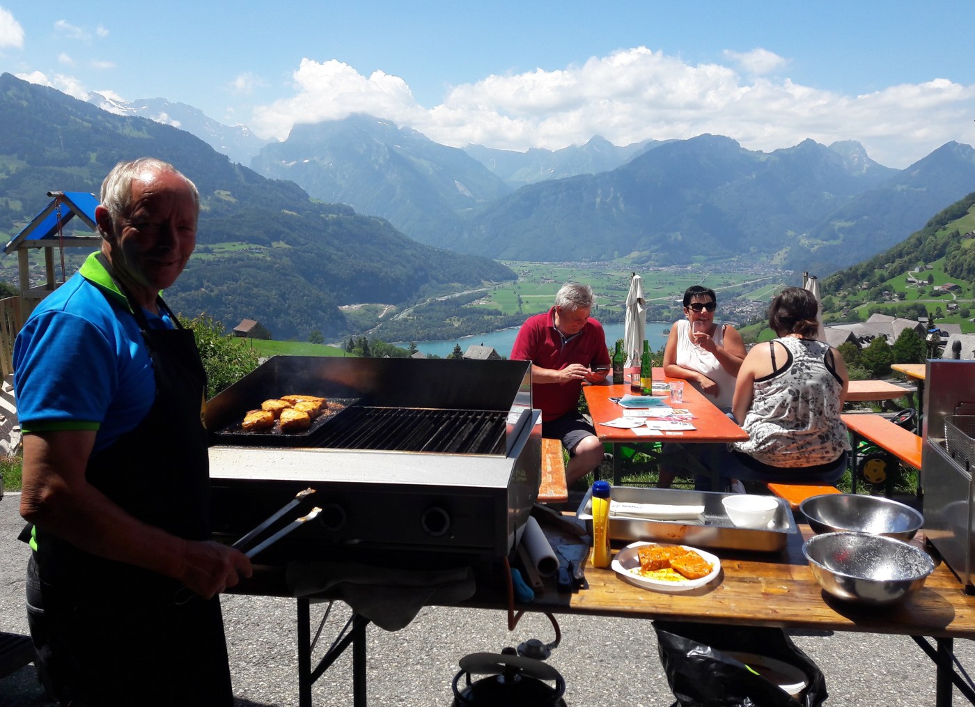 Sinnbildlich das Titelbild: Wo sonst gibt es einen schöneren Platz für unsere Grillmeister (auf dem Bild Leo Boos) und unsere Gäste in der Festwirtschaft?