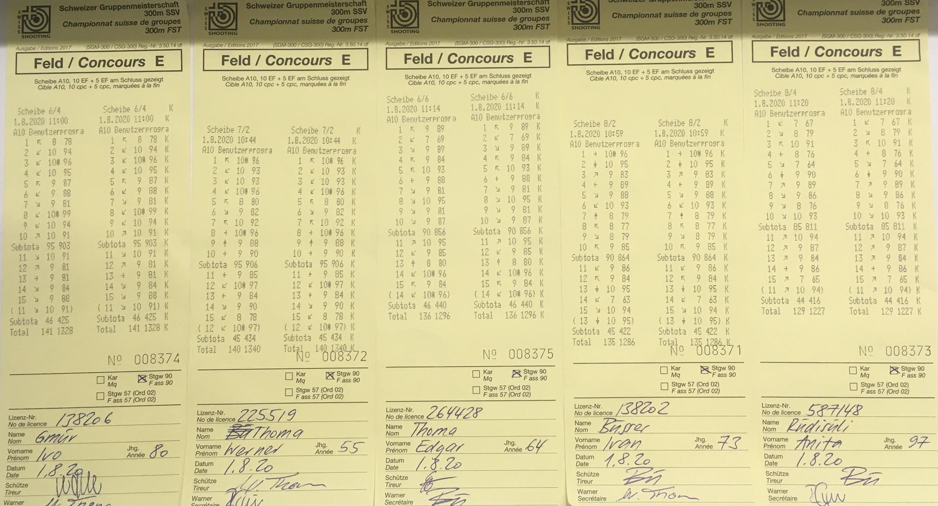 Ob diese beiden Resultate für einen der ersten beiden Plätze in ihren Kombinationen ausreichen, was grundsätzlich die Qualifikation für den Final vom 12.09.2020 in Emmen bedeutet, wird sich heute Abend zeigen. Die Resultate werden ab ca. 20.00 Uhr hier bekannt gegeben.