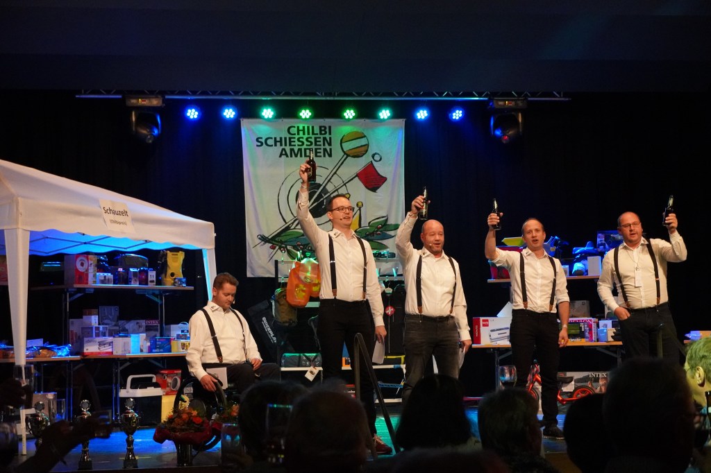 Am Samstagabend, 6. November 2021 lud die Chilbikommission zur Schützenchilbi ein. Der Abend stand unter dem Motto «Schützenschau». Einige Ehefrauen, Ehemänner, Eltern, Kinder etc. von gut positionierten Schützinnen und Schützen wurden im Vorfeld der Schützenchilbi von der Chilbikommission angeschrieben. Die angeschriebenen Personen hatten den Auftrag, die «Schauetikette» auszufüllen und dabei unter anderem einen Tipp bezüglich dem Glücksstich abzugeben.