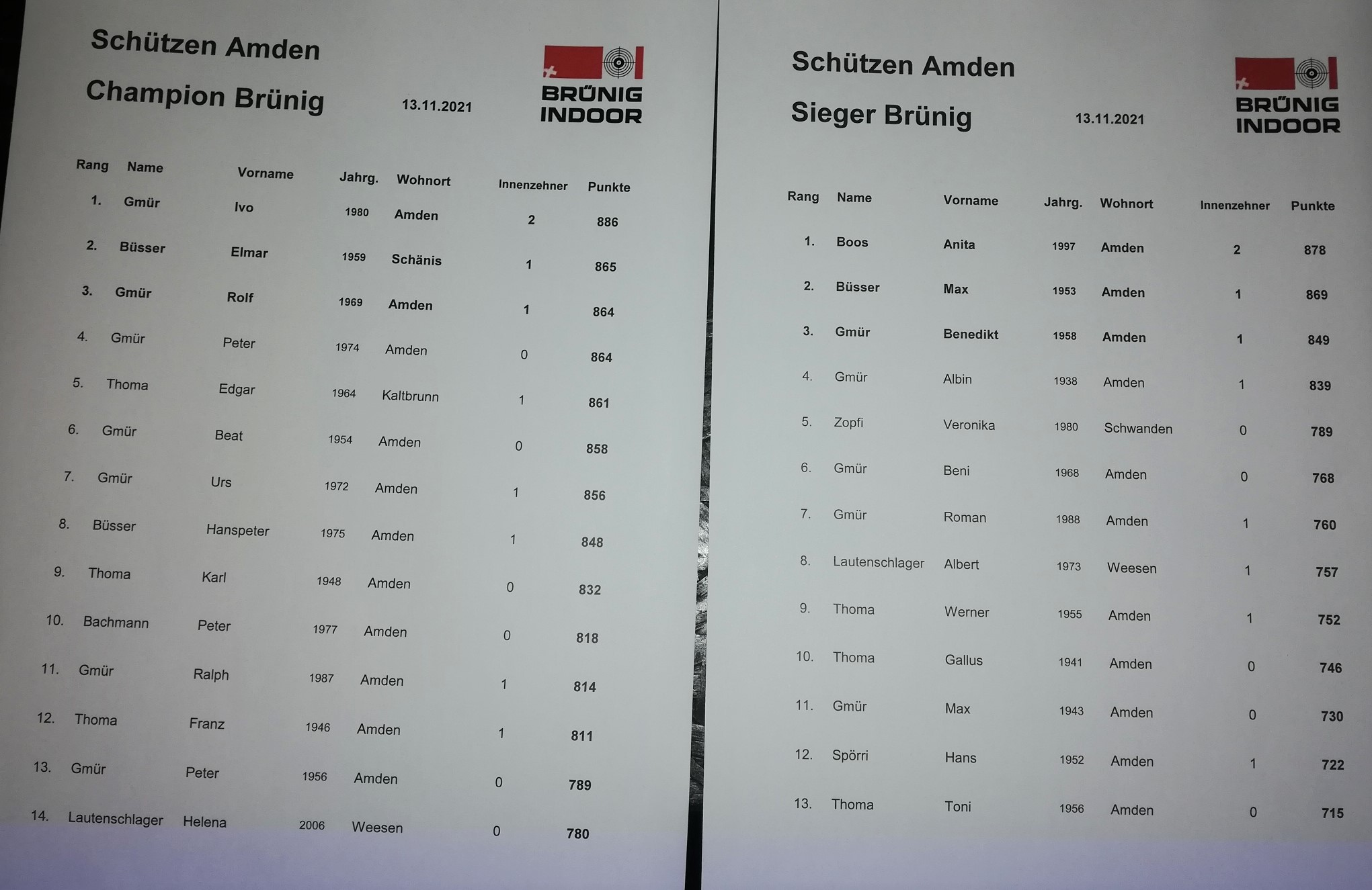 Im Final um den Brünig Sieger gab es eine Siegerin. Anita Boos holte sich mit ebenfalls starken 878 Punkten diesen Titel vor Max Büsser mit 869 Punkten und Beni Gmür 58 mit 849 Punkten. Die komplette Rangliste der beiden Finals ist hier ersichtlich.