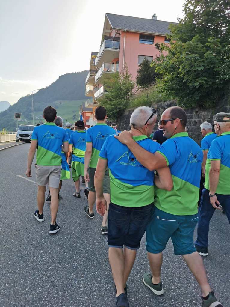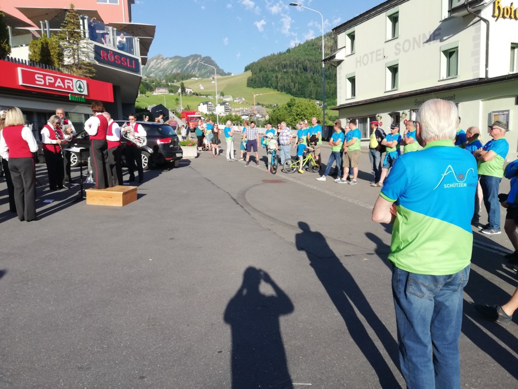 Am Abend fand dann das traditionelle Absenden in Amden statt. An dieser Stelle gehört der Dank der Musikgesellschaft Amden und dem Gemeindepräsidenten Peter Remek. Sie trugen zu einem schönen und würdigen Schützenempfang in Amden bei. Später folgte dann beim gemütlichen Beisammensein im Restaurant Rössli noch die Cup-Auslosung für die 2. Runde.