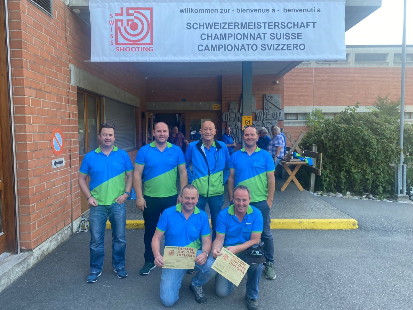 Diese Woche finden in Thun die Schweizer Meisterschaften statt. Am Dienstag waren auch 5 Ammler mit dem Sturmgewehr 57 im Einsatz. In der Kategorie Sturmgewehr 57 liegend Elite waren dies mit Pidu Gmür, Reto Gmür, Urs Gmür und Rolf Gmür ausschließlich „Schwendibuebä“. Mit den super Resultaten von 568 Punkten bzw. 567 Punkten holten sich Rolf Gmür auf Rang 7 und Urs Gmür auf Rang 8 ein Diplom, herzliche Gratulation. Ebenfalls ein sehr gutes Resultat erzielte Reto Gmür mit 564 Punkten. Mit diesem Resultat klassierte er sich auf dem 19. Rang. Nicht ganz nach Wunsch hingegen lief der Wettkampf für Pidu Gmür. Er musste sich mit 544 Punkten zufriedengeben und belegte den 52. Rang. Neuer Schweizermeister wurde Marcel Sommer mit 573 Punkten.