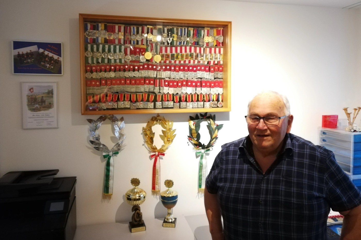 Im Kranzkasten hängen schön säuberlich die Meisterschaftsmedaillen sämtlicher Kantonen. Diese habe ich im 2-Stellungs-Wettkampf mit dem Stgw 57-02 errungen. Einen grossen Anteil an diesen Erfolgen von damals hatte Josef Thoma. Er war das Zugpferd und hat mich immer wieder ermuntert und motiviert an diesen Wettkämpfen teilzunehmen.