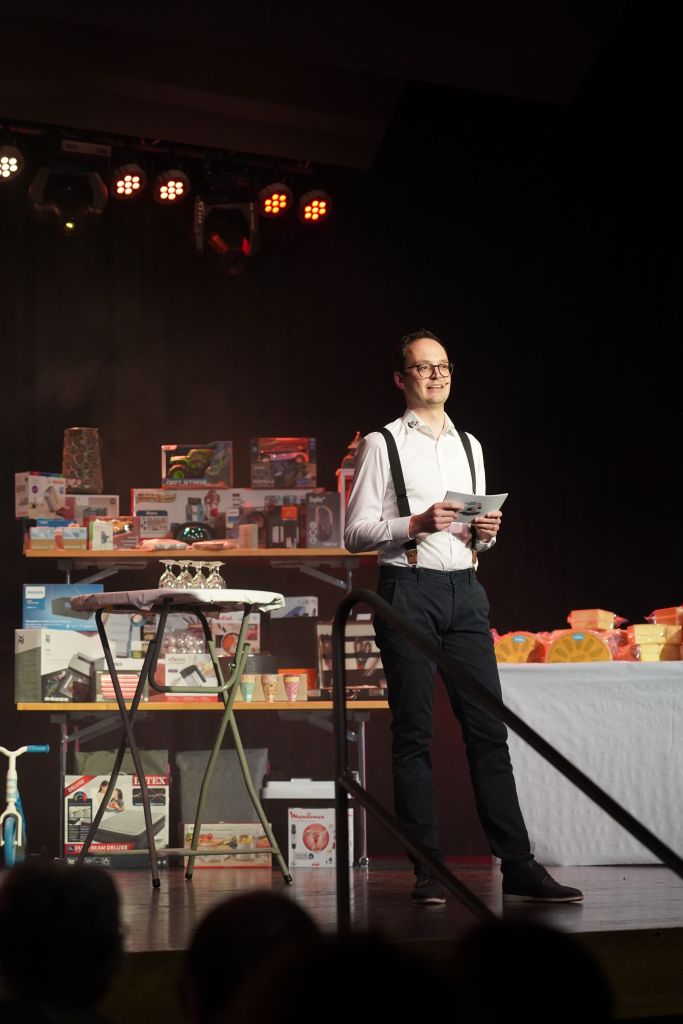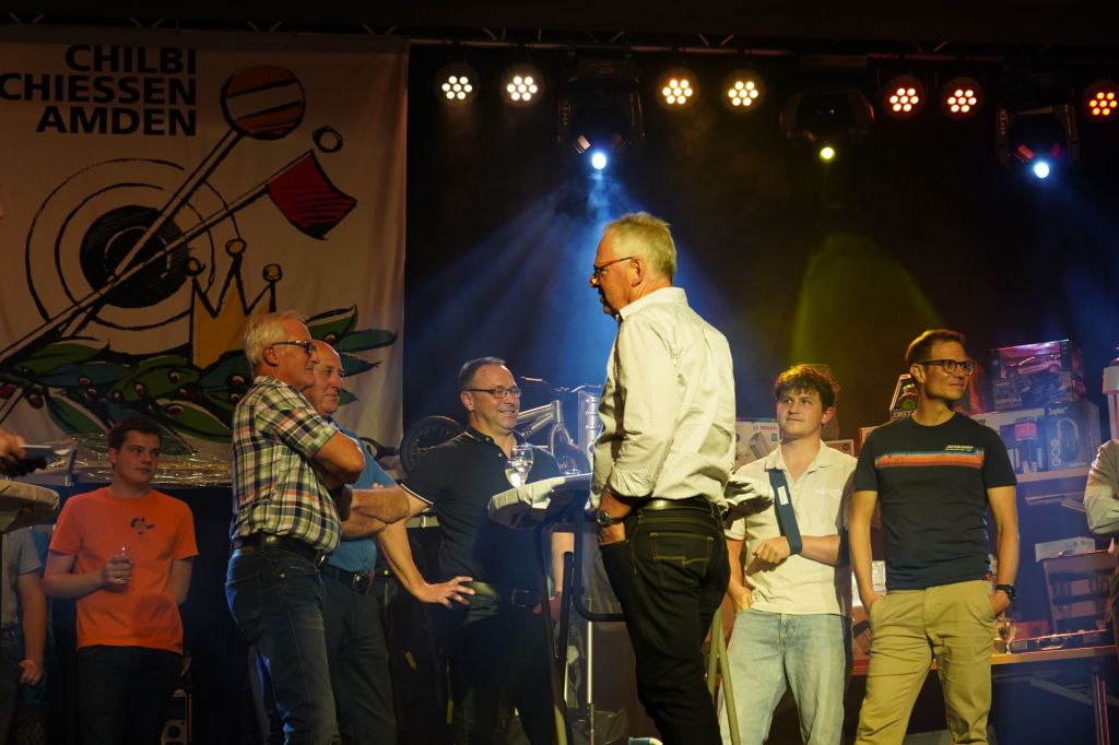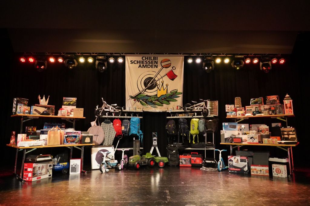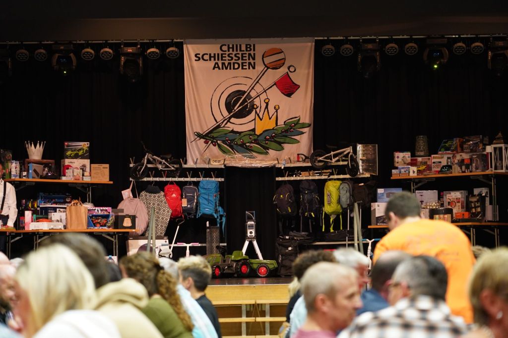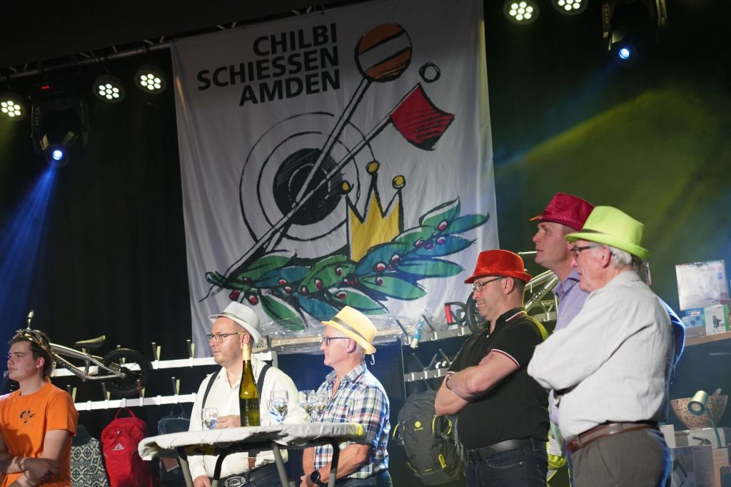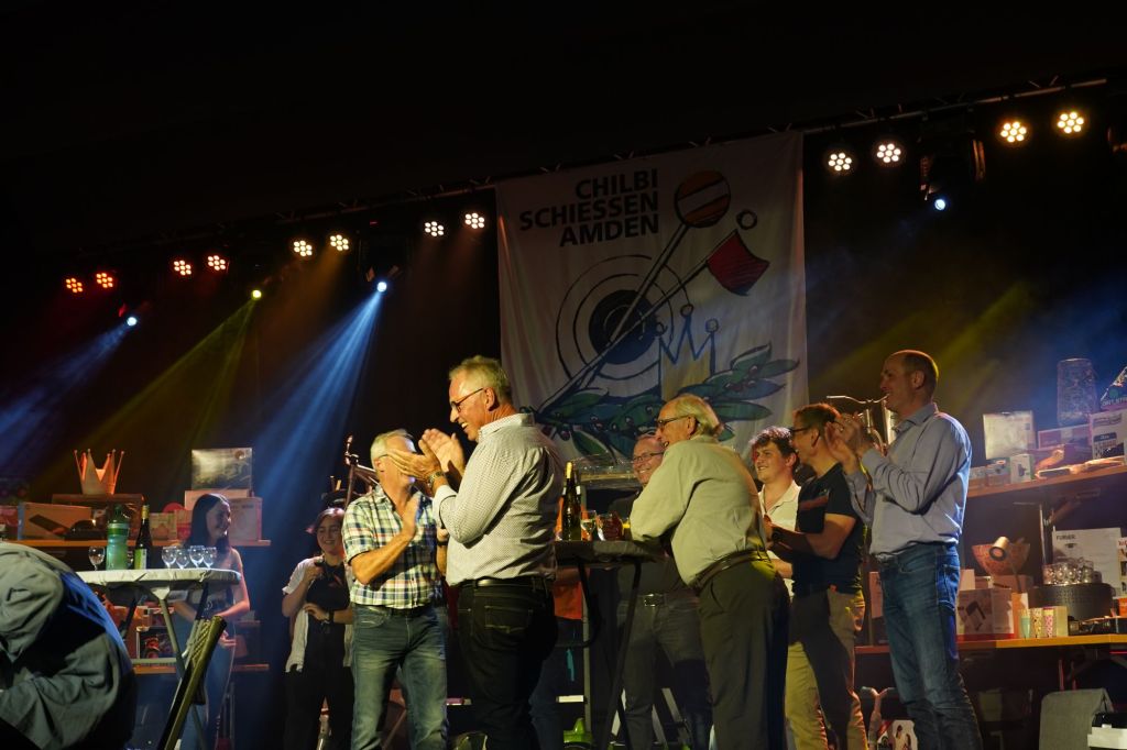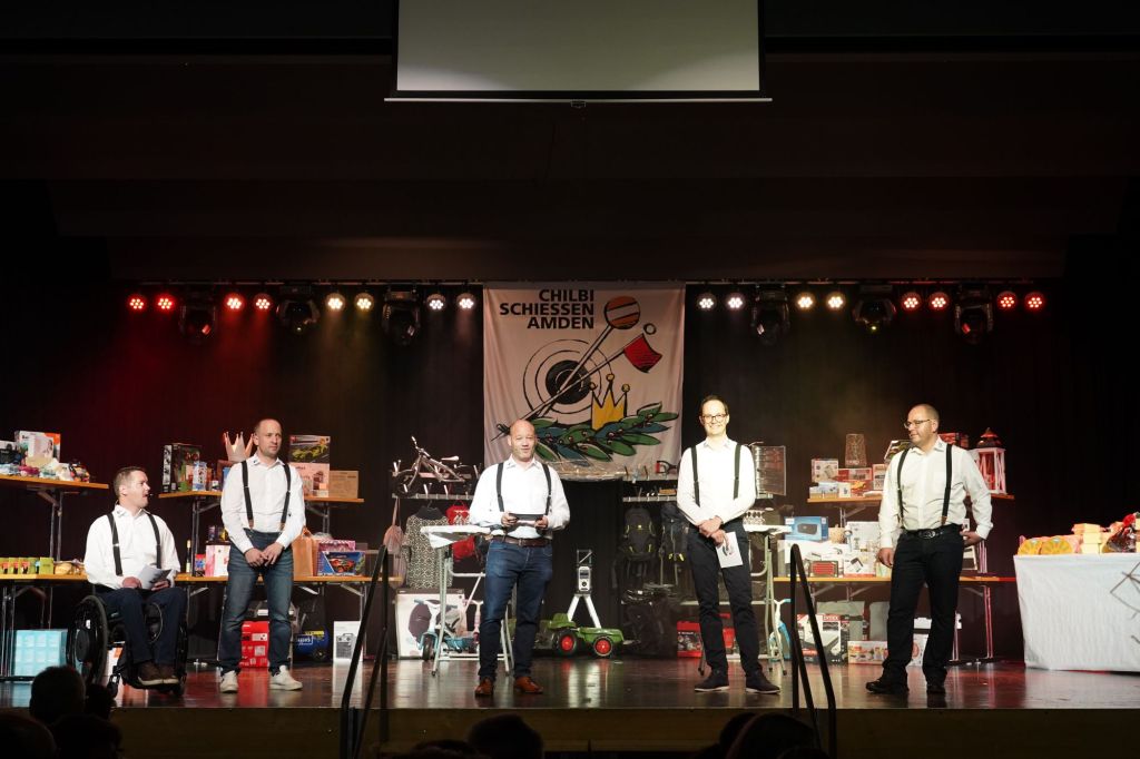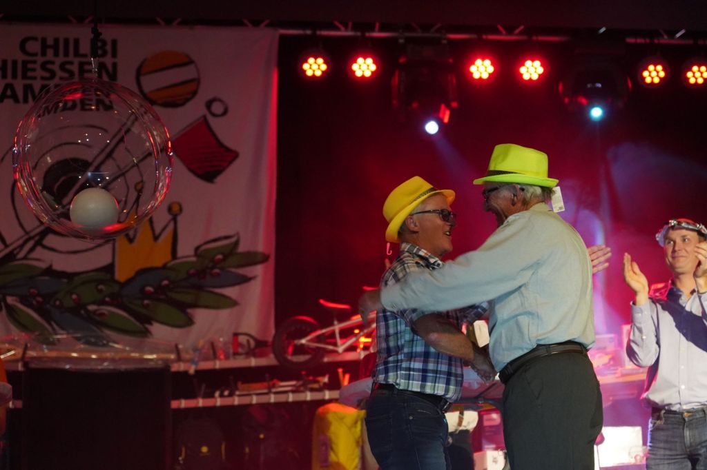 Die diesjährige Schützenchilbi stand unter dem Motto „Chilbissimo„, dies in Anlehnung an die ehemalige Unterhaltungssendung „Benissimo“ im Schweizer Fernsehen. Jene Teilnehmende, welche sich aufgrund ihrer Resultate im Gabenstich Hoffnungen auf einen Platz auf der Bühne machen durften, hatten im Vorfeld ein „Chilbissimo-Los“ an die Chilbikommission einzusenden. Auf die Bühne schafften es dann 17 Teilnehmende des Chilbischiessens. In der Folge musste immer wieder eine Person die Bühne verlassen. Dazwischen kamen die Besuchenden der Schützenchilbi immer wieder in den Genuss von „Benissimo-Einlagen“, sei dies mit Telefongesprächen, den „Friends“ oder den Farbkugeln, in denen einzelne eingesandte Lose versteckt waren.