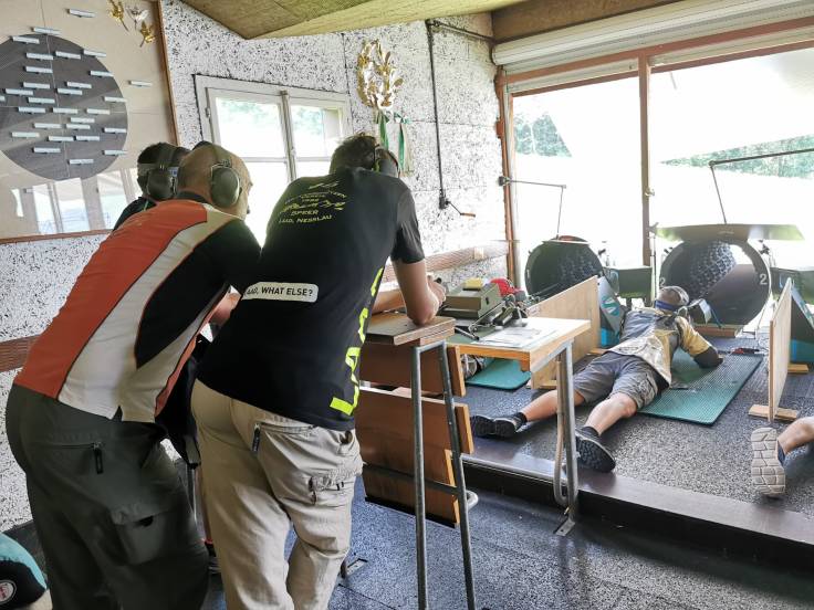 Auch im Feld D ging es sehr eng zu und her. Vor dem letzten Schuss lag Urs Gmür einen Punkt vor seinen punktgleichen Verfolgern Bruno Rutz und Rolf Gmür. Diese beiden mussten also einen zusätzlichen Schuss abgeben bei dem sich Bruno durchsetzen konnte, im anschliessenden Duell um den Tagessieg gegen Urs dann aber den kürzeren zog. So gewann Urs die Kategorie D mit fünf Punkten Vorsprung vor Bruno.