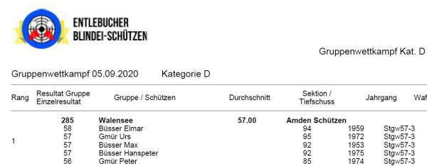 Mit einer Top-Leistung aller fünf Gruppenschützen, angeführt von Elmar Büsser, konnte sich die Gruppe Walensee am Fahnenweihschiessen, der Entlebucher Blindei-Schützen, den Sieg in der Gruppenkonkurrenz holen. Elmar Büsser (58 Punkte), Urs Gmür, Max Büsser, Hanspeter Büsser (alle 57 Punkte) und Pidu Gmür (56 Punkte), verwiesen die Konkurrenz um fünf Punkte und mehr. Die Rangliste ist... Continue Reading →