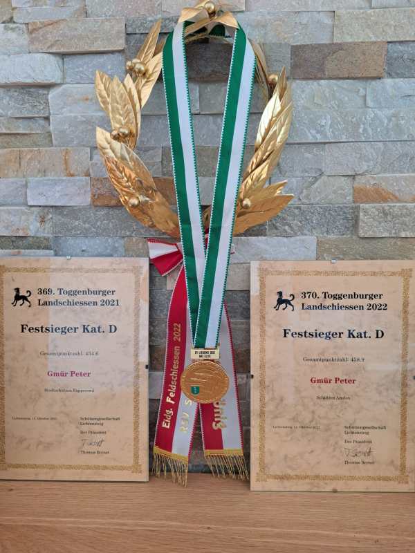Pidu Gmür holt sich am 370. Toggenburger Landschiessen den Festsieg in der Kategorie D und verteidigt den Titel aus dem Vorjahr. Mit einem Resultat von 458.9 Punkten schraubt er sein Punktetotal vom Vorjahr um 4.3 Punkte nach oben und setzt sich gegen die anderen 52 Schützinnen und Schützen in seiner Kategorie durch, herzliche Gratulation! Die... Continue Reading →