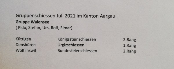 In den Monaten Juli und August haben einige Schützen wiederum einen weiten Weg auf sich genommen und an zahlreichen Gruppenschiessen teilgenommen. Besonders erfolgreich war dabei die Reise nach Küttigen, Densbüren und Wölflinswil. Nebst den super Gruppenresultaten von 464, 471 und 467 punkten, sicherte sich Rolf Gmür den Sieg in der Festsiegerkonkurrenz über alle drei Schützenfeste... Continue Reading →